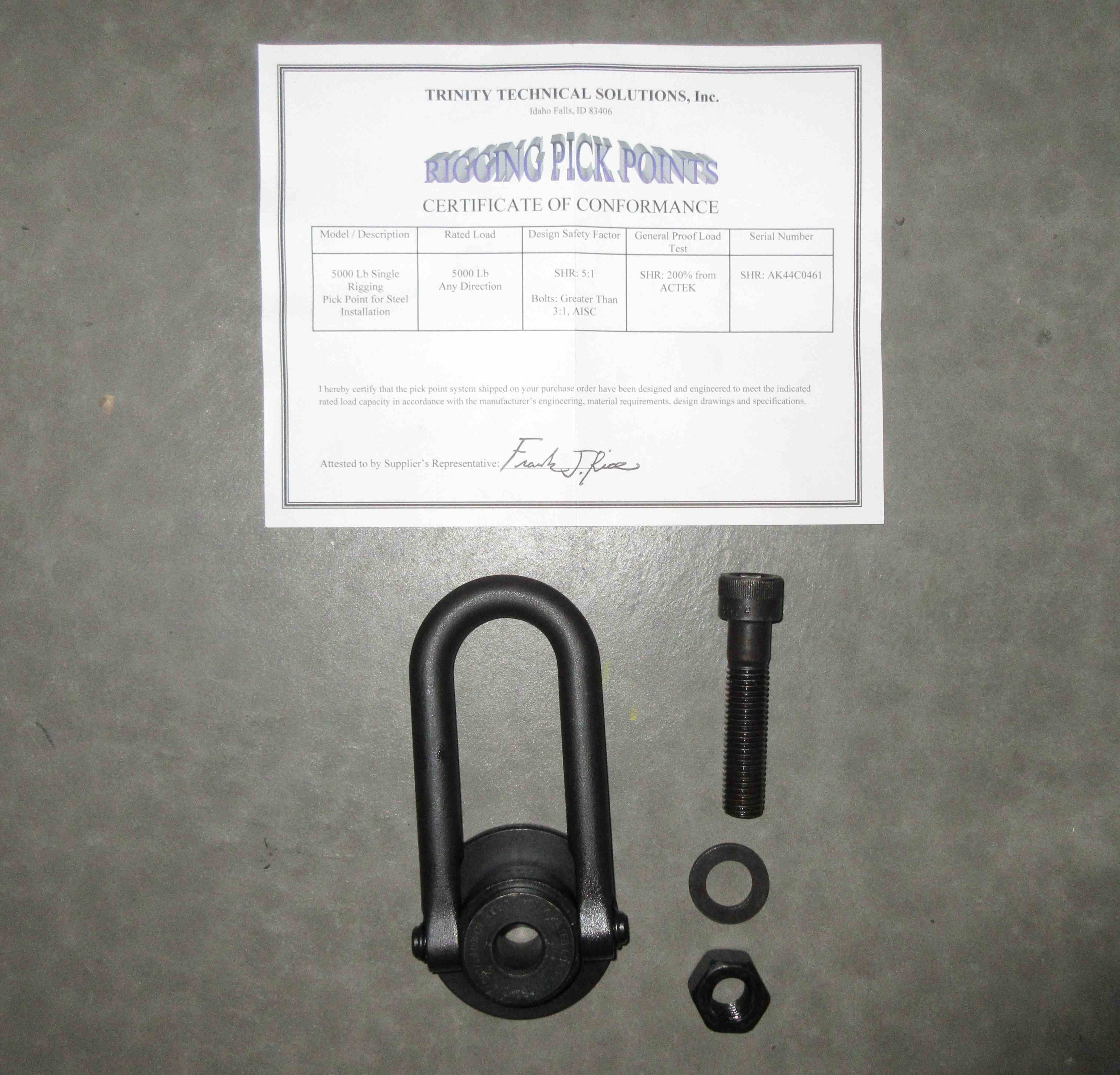 The 5,000 lb Single Rigging Pick Point for steel installation has a working load limit (WLL) of 5,000 lbs in any direction and can quickly be installed on any steel structure. This revolutionary anchor design comes as a kit with everything you need to quickly install a Rigging Pick Point.